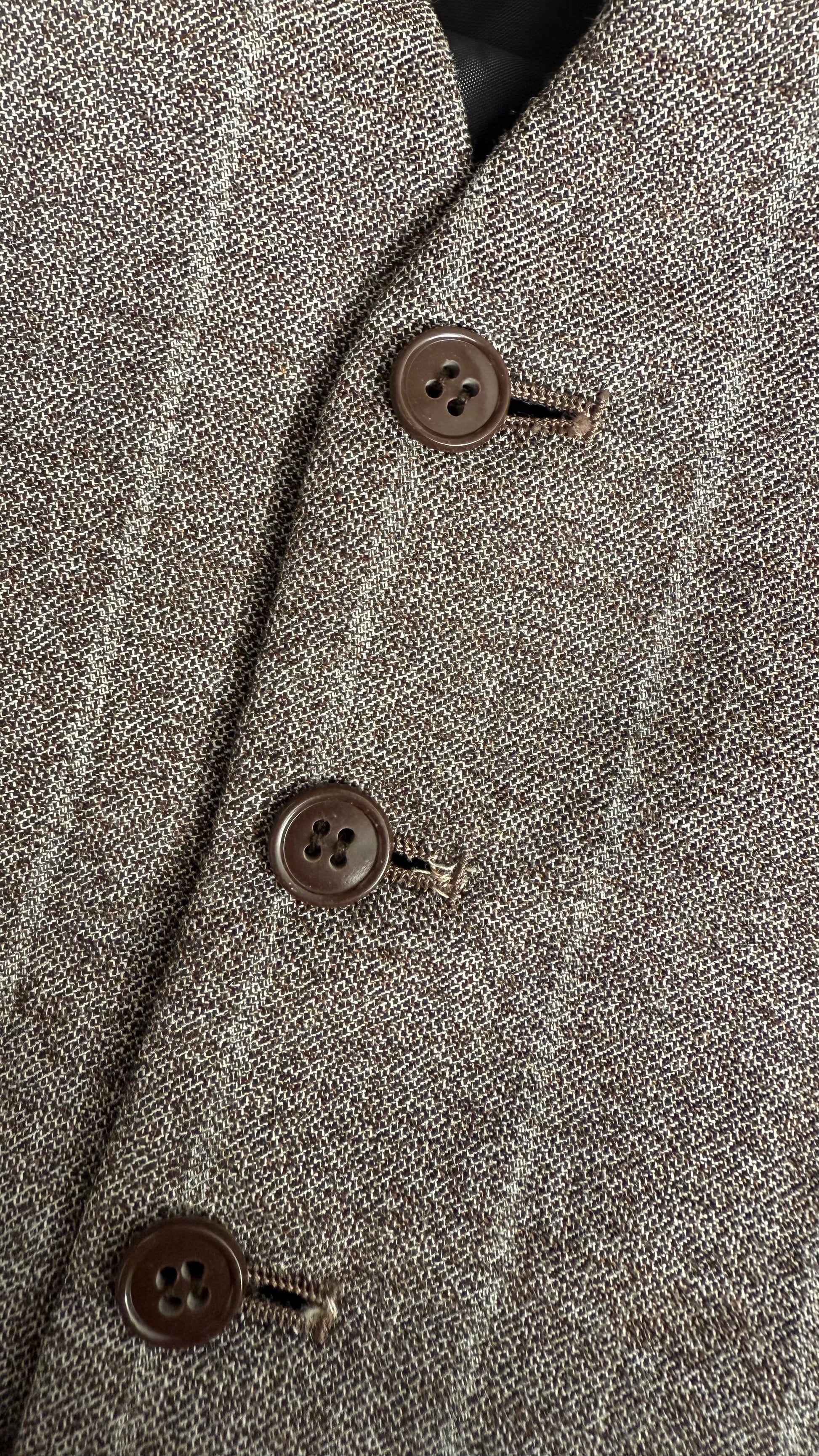 Very cool 2 piece, pin striped suit. Vest is adjustable, with real pockets. Pants are wide legged and ready for you to stride around.
